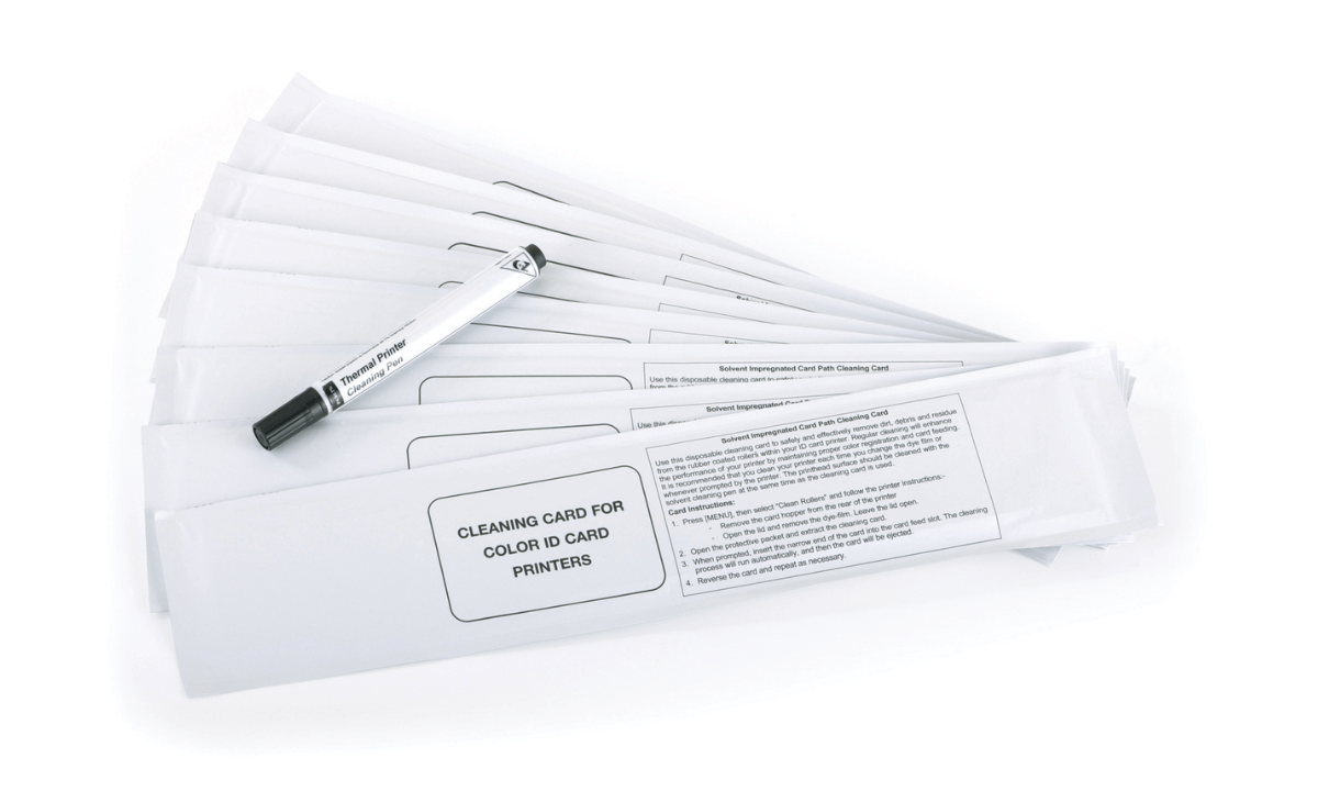 Deze reinigingsset bevat 10 reinigingskaarten en een marker, en is geschikt voor de Magicard 300, de Magicard 600 en de Magicard E+ printers. Door uw printer regelmatig te reinigen, blijft deze soepel werken en heeft de printer een langere levensduur.