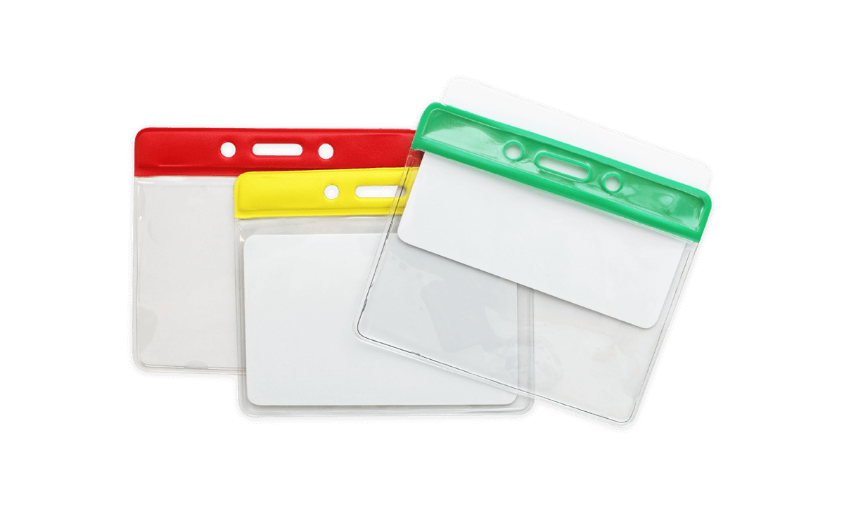 Pas uw kleurgecodeerde badgehouder aan met uw eigen grafische afbeeldingen of logo's! Transparant vinyl met gekleurde bovenste strip en sleuf-/kettingsgaten. Ideaal formaat voor ID-kaarten en badges!