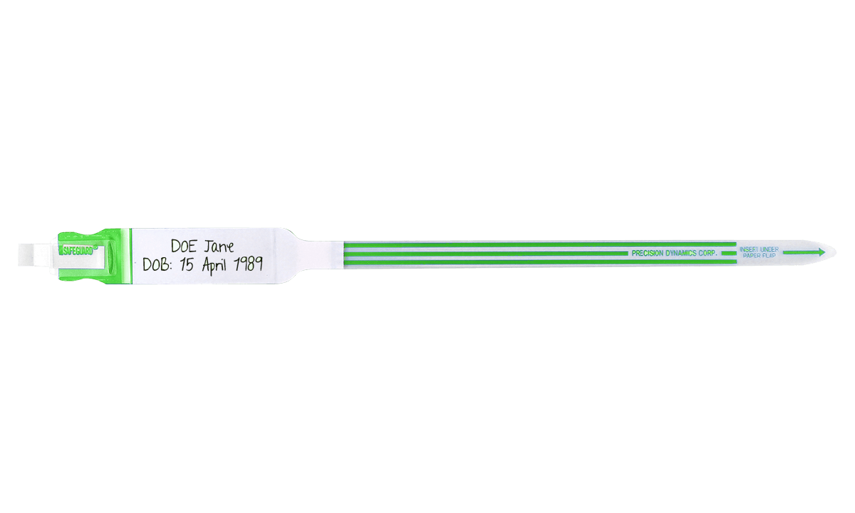 Onze Safeguard polsbandjes voor directe inscriptie voor volwassenen en kinderen zijn gemaakt van stevig trilaminaat en hebben een zelfklevende sluiting.