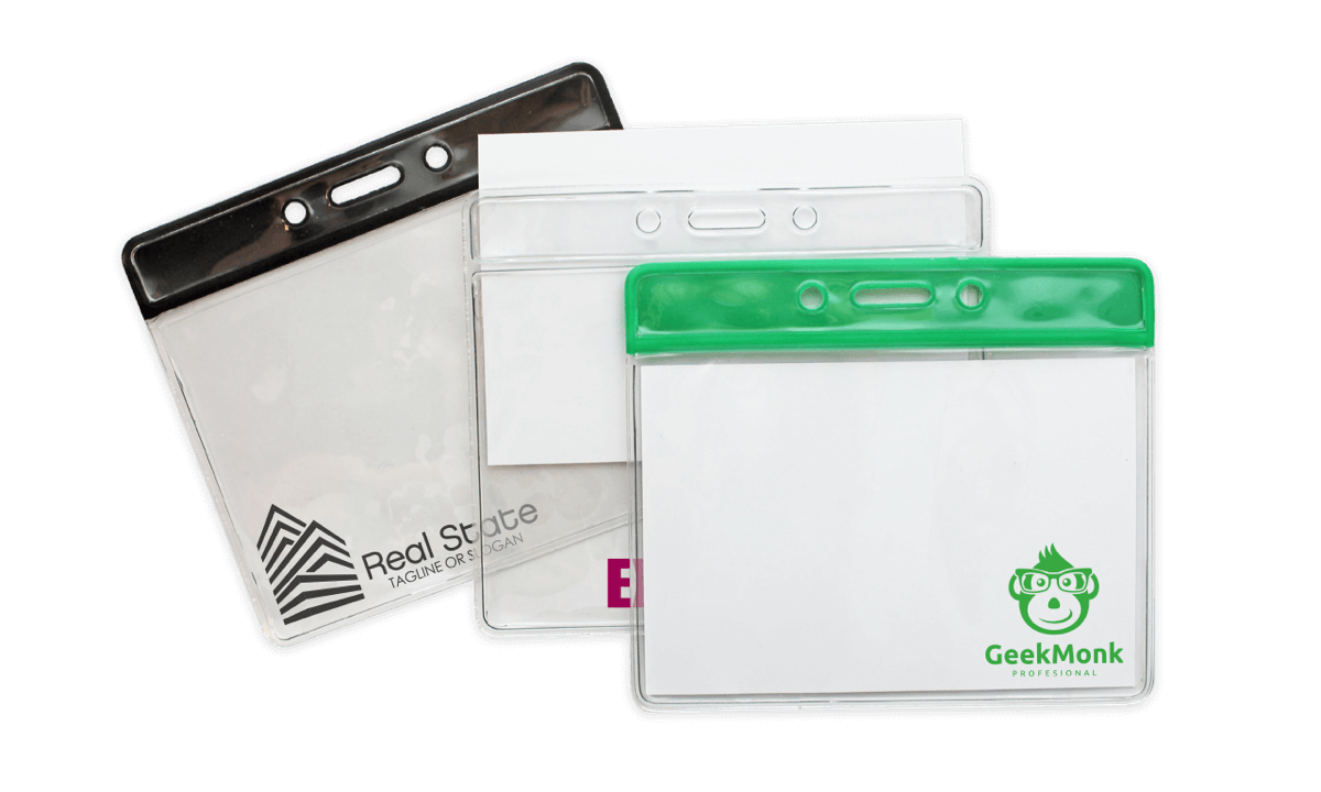 Pas uw kleurgecodeerde badgehouder aan met uw eigen grafische afbeeldingen of logo's! Transparant vinyl met gekleurde bovenste strip en sleuf-/kettingsgaten. Ideaal formaat voor ID-kaarten en badges!