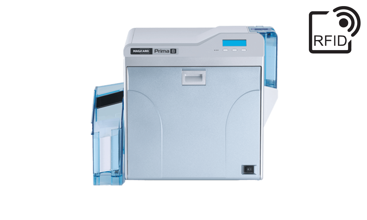 De Magicard Prima 8 Smart Duo biedt een betrouwbare, robuuste oplossing voor de onmiddellijke uitgifte en laminering van kaarten in een compact formaat. Met behulp van retransfer printen worden afbeeldingen eerst op een dunne film geprint en vervolgens met hitte op het kaartoppervlak overgebracht. Hierdoor ontstaat een glanzende afbeelding met een hoge resolutie die direct over de rand van de kaart wordt geprint. De Prima 8 Smart Duo-printer is ontworpen om op beide zijden van de kaart te printen en om smartcards te printen en te programmeren.