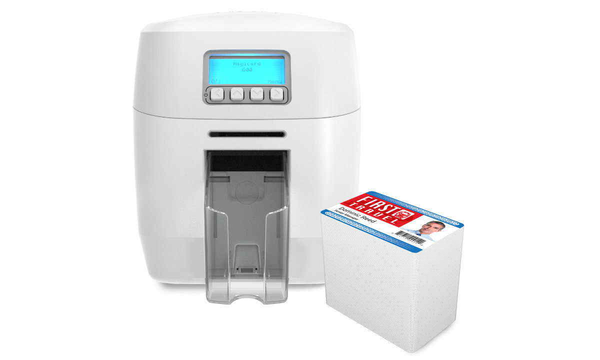 De enkelzijdig Magicard 600 Smart Uno (enkelzijdig afdrukken) is een uitzonderlijke oplossing voor het afdrukken van smartcard en biedt precieze details, strenge beveiliging en hogere afdruksnelheden. De printer integreert naadloos met de bestaande infrastructuur om een veilige verwerking van ID’s te garanderen. Print en programmeer uw smartcard in één beweging met de Magicard 600 Smart Uno!